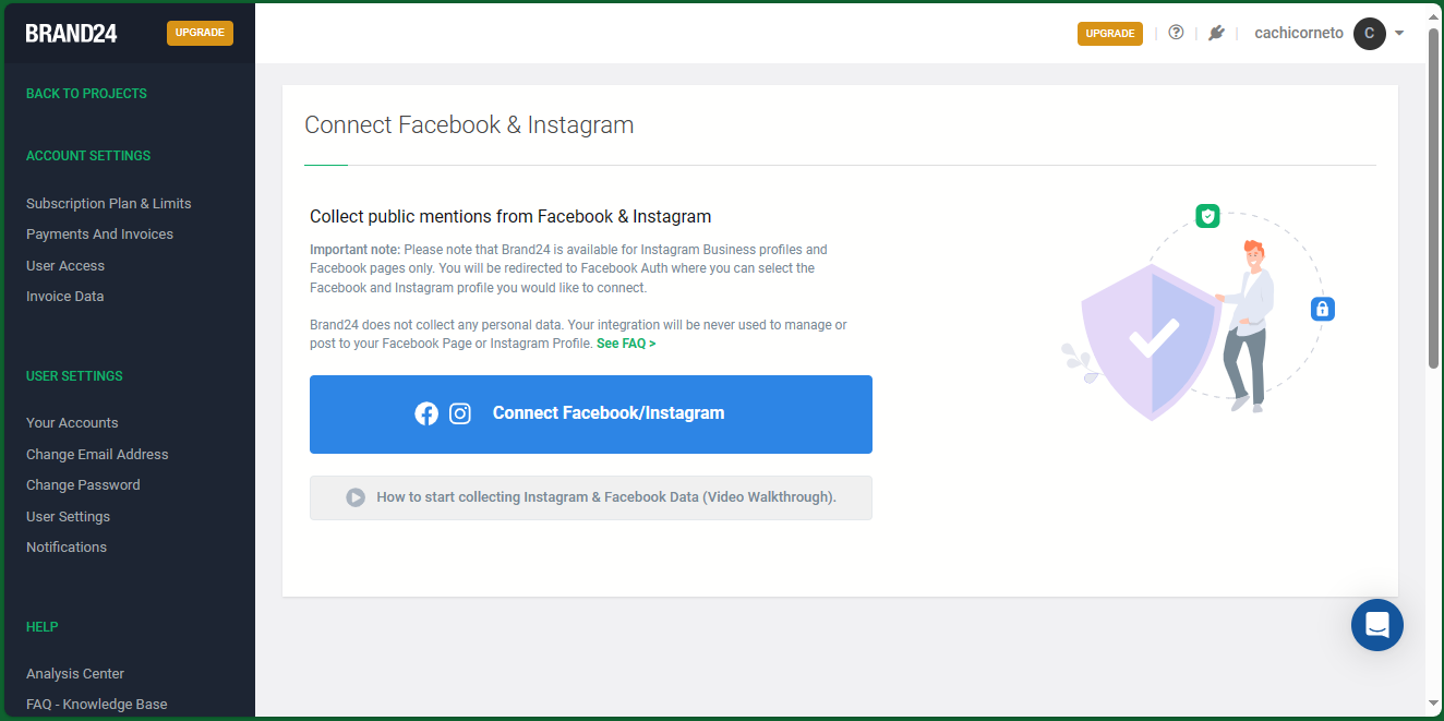 How to connect Brand24 account to Facebook and Instagram.